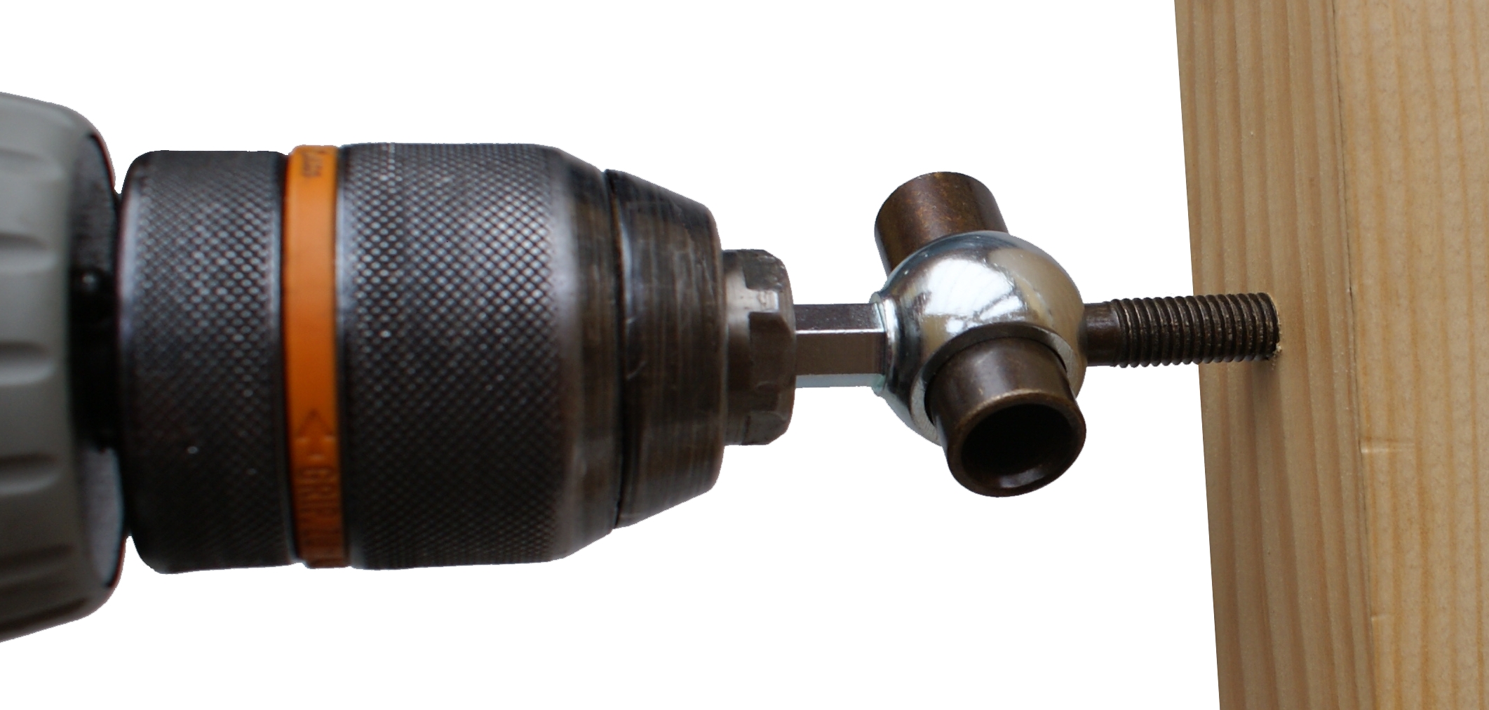 Help for screwing in the hinges more easily! It is designed especilly for lacquered hinges, as it is lined with plastic and does not rub the surface of the hinge. Clamp it in a drill and use it to quickly screw in hinges with the body diameter of 15 mm.