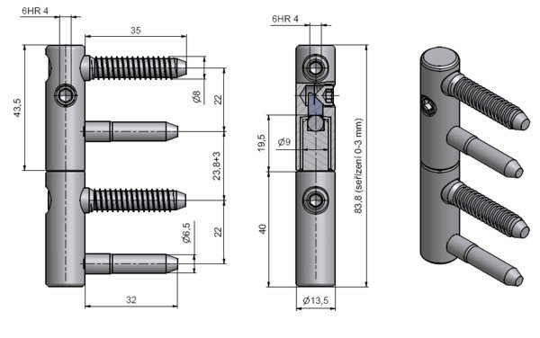 | Diameter of hinges (external) | 13,5 mm |
