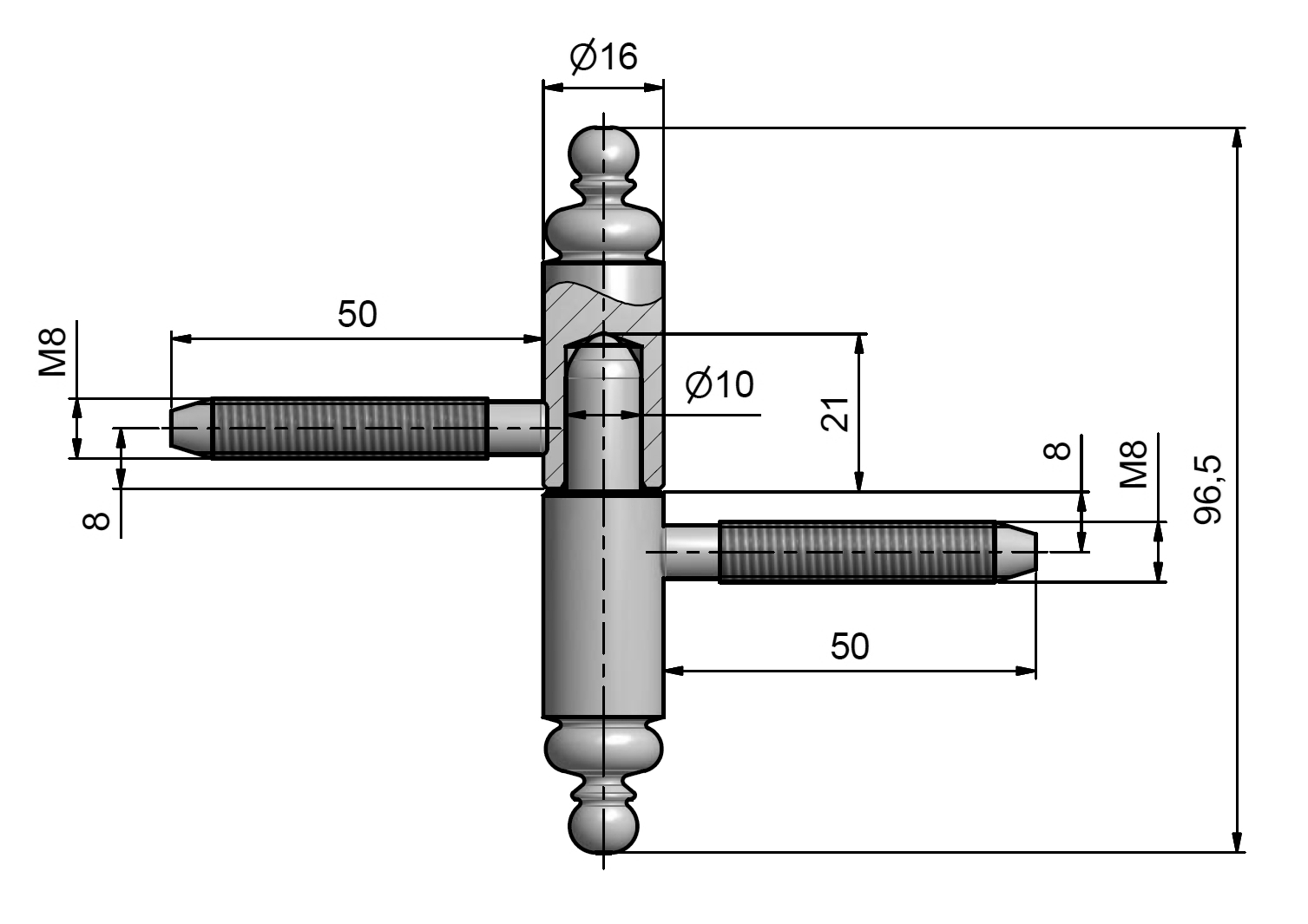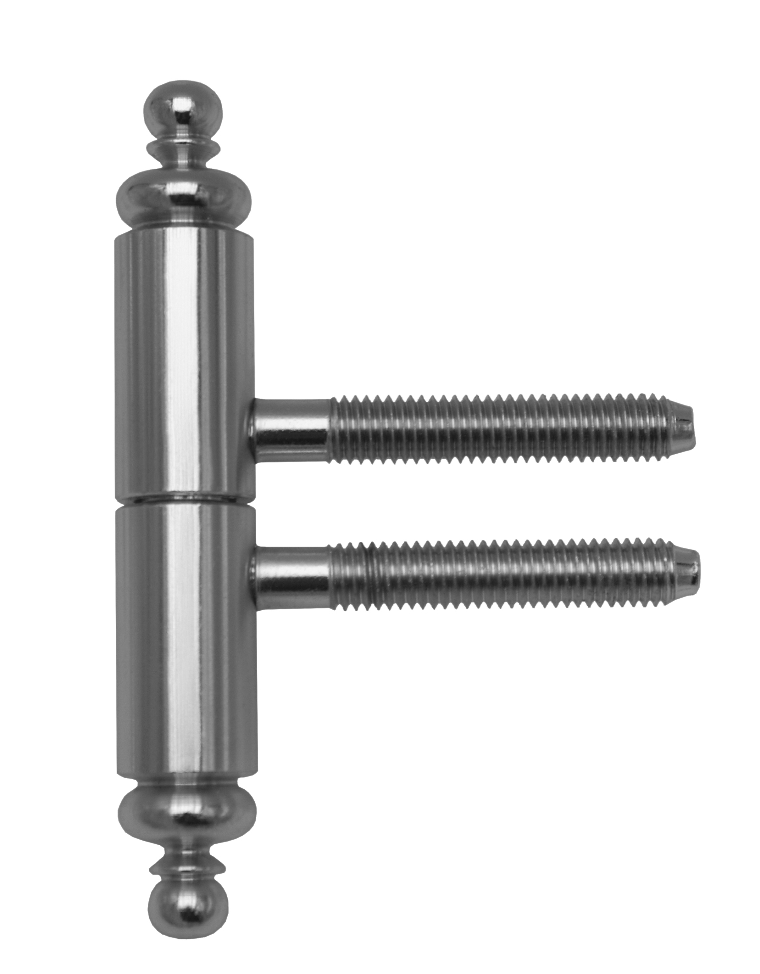 For turning connection of interior wooden door with half-groove and wooden frame. Hinge with decorative ending is suitable into interior with engraved furniture.
