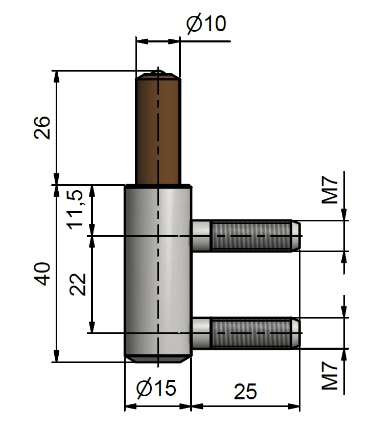 Lower part of hinge for wooden casing frame. (into hinge holder OKZ) There is a plastic case put on pin and bearing ball that ensure easy turning of hinge.