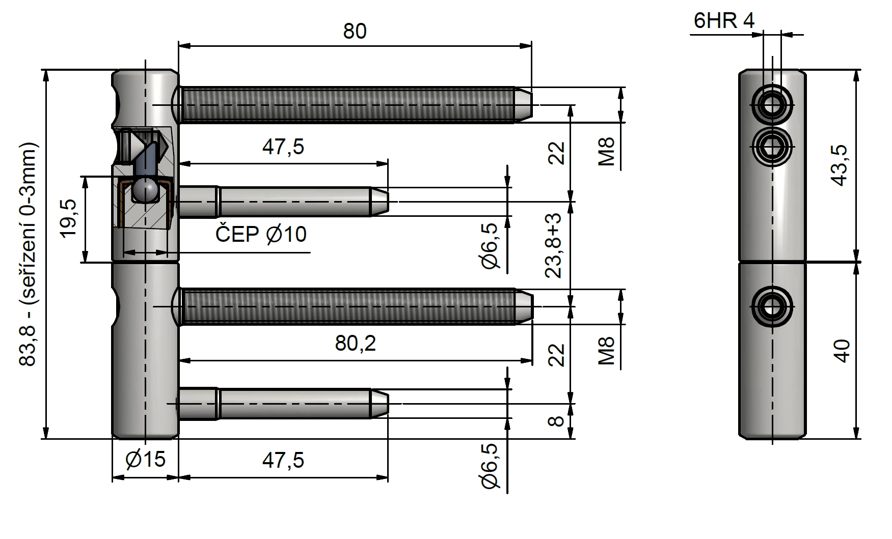 Door hinge TRIO 15 PYRO 2 M8 PH