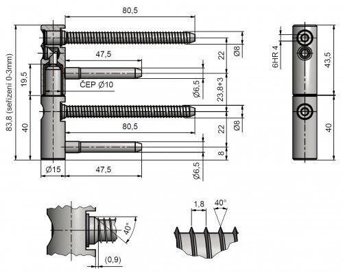 | Diameter of bolt rivet(s) | Special screw-thread into wood ø 8 |