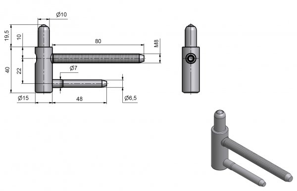 Lower part of hinge TRIO 15 is into wooden and steel frame. Complete hinge is adjustable in three directions.