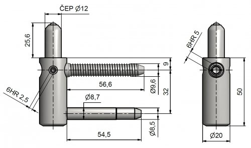 Usage: Lower part hinge TRIO 20 + upper part adjustable in three directions. Diameter pin 12 mm. There is a posibility to use ABS and metal caps on hinges.