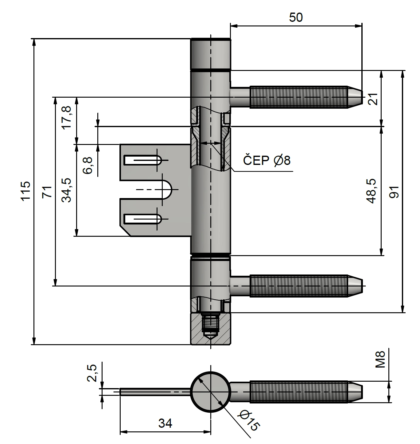 Hinge of three parts 15x90 M8 OZ34 TUKAN stainless steel