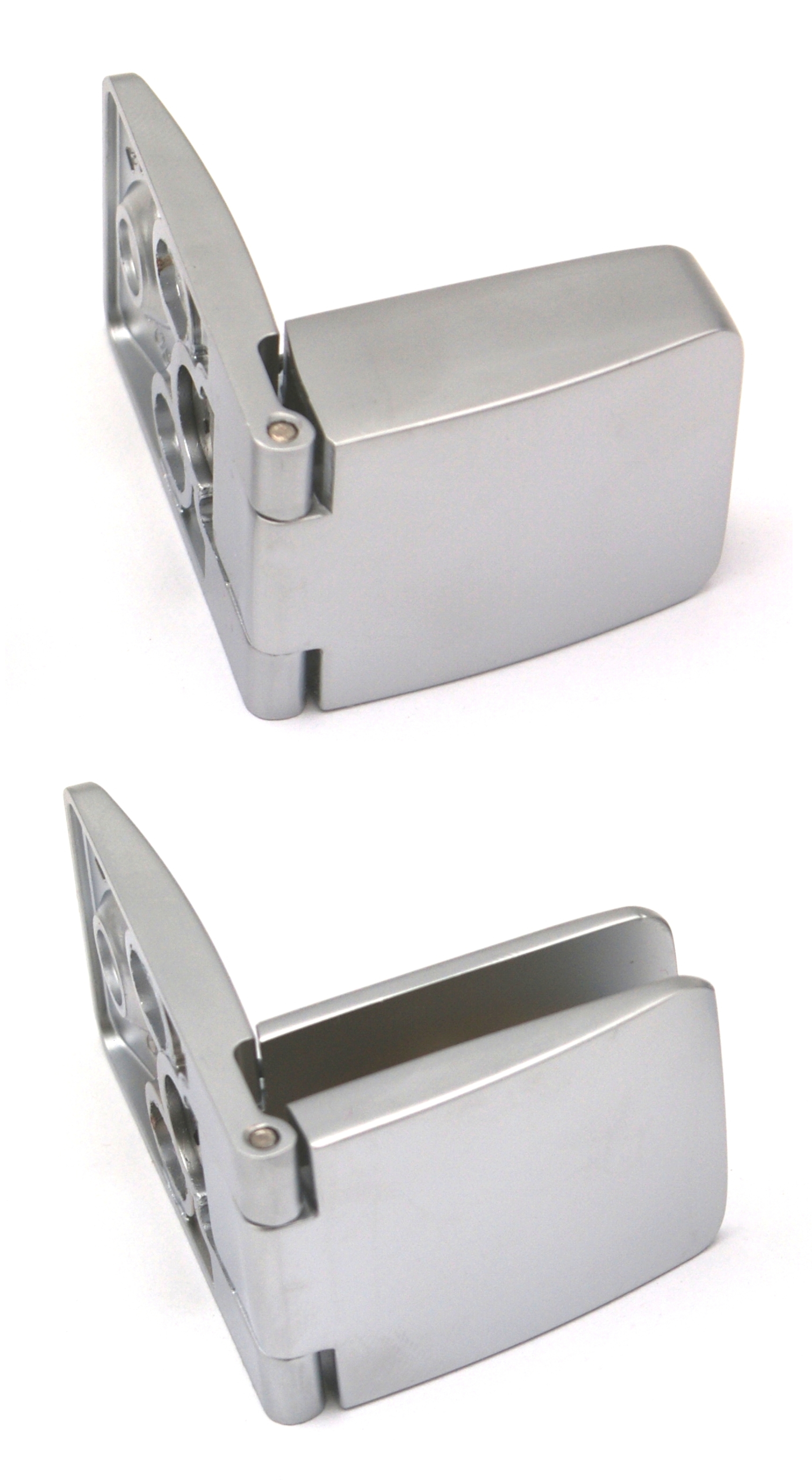 Two parts (1 set) of hinge for glass door to put it on the top and bottom. Maximal dimension of door 1000x400 mm. Glass thickness 4-6 mm.