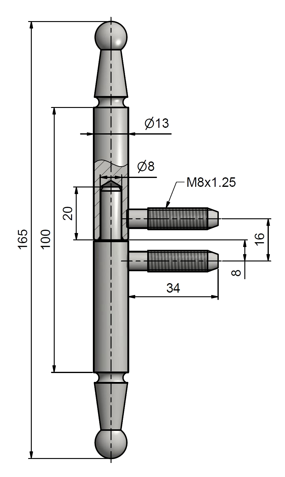 Hinge with decorative ending. It is used for turning connection of window wing and frame.
