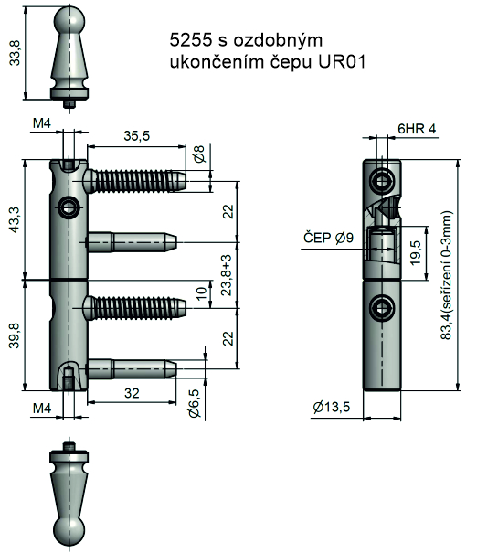 Window hinge EXPERT with decorative ending – we will customize it according to your needs (hinges are delivered assembled).