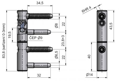 Hinge is adjustable in three directions (window wing, frame and height). Hinge is used for turning connection of window wing and frame. There is a possibility to use decorative caps on hinges.