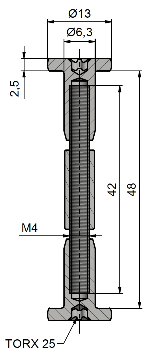 Pro spojení nábytkových desek a skříněk. Rozsah použití je 45 - 51 mm.