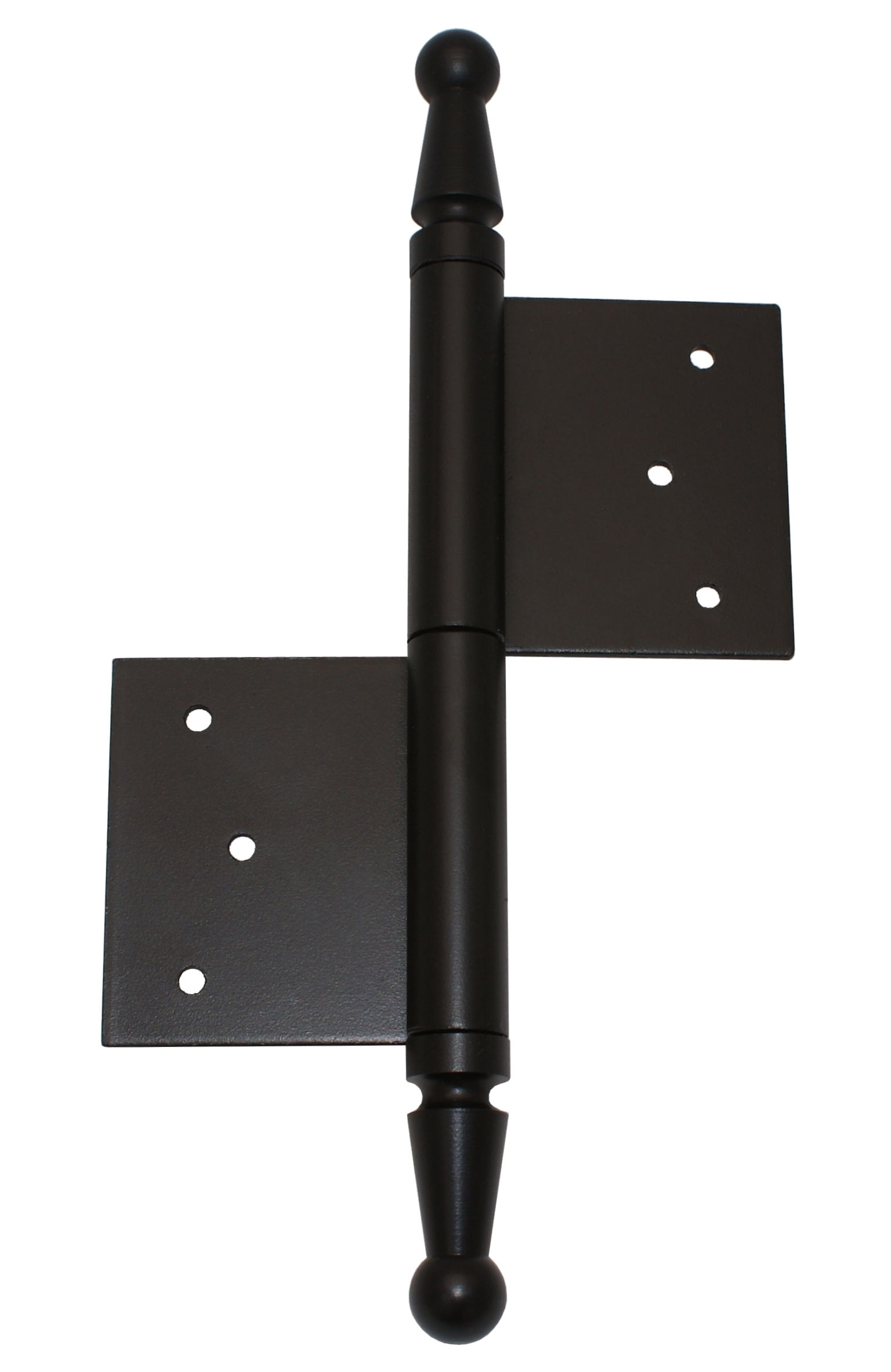 Hinge for turning connection of door and wooden frame. Upper and lower parts are mortised and secured by nails without head. Plug of the hinge is provided with decorative ending UR01. Suitable for reconstruction of old doors.