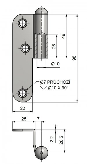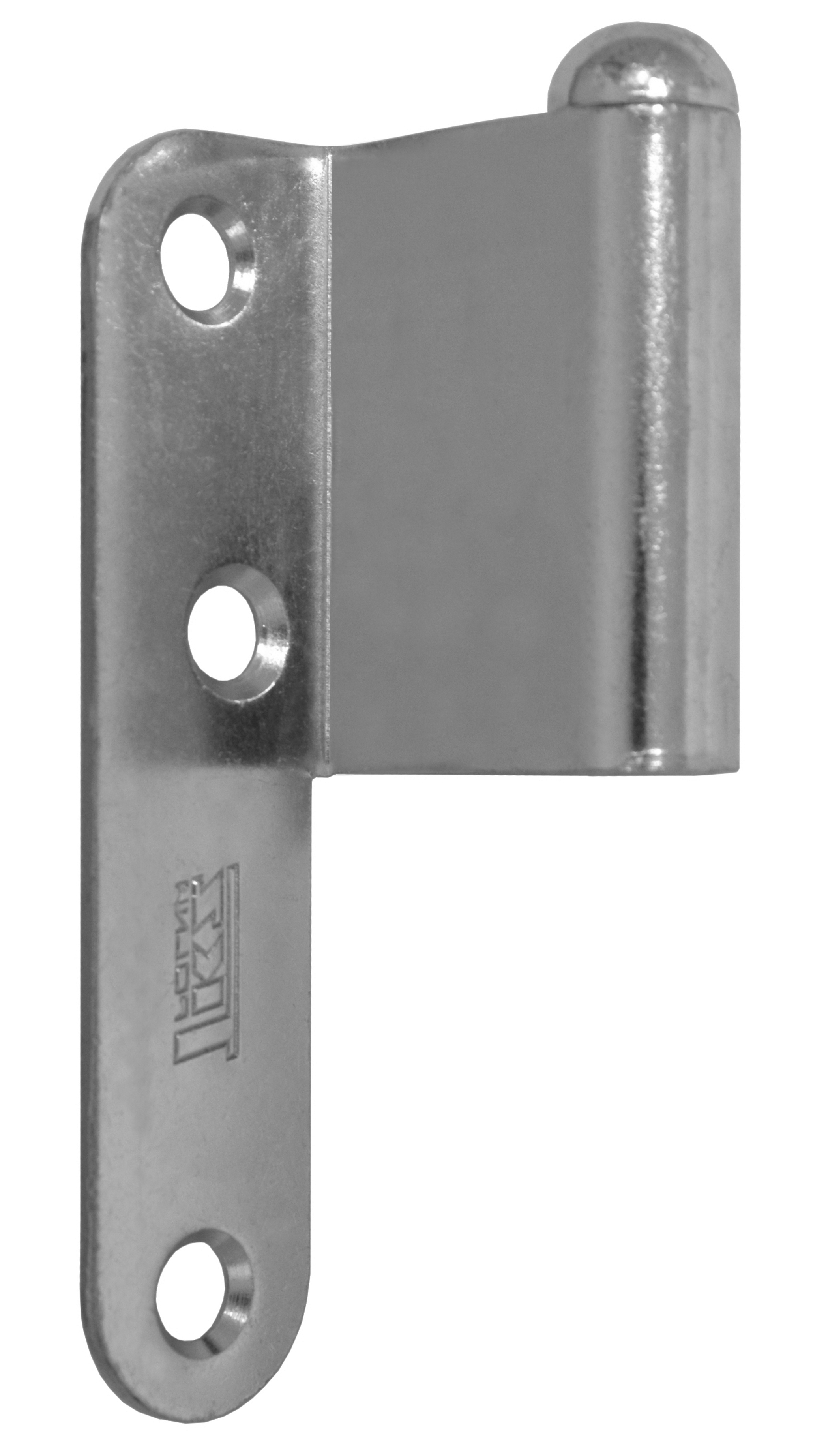 Hinge (=upper part) for turning connection of rebated door and frame.