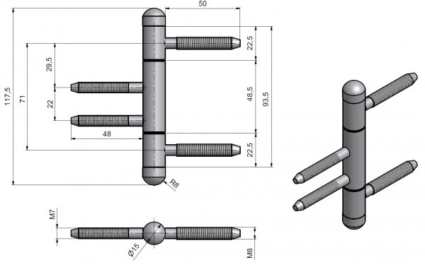 Hinge of three parts 15x90 M8 22/M7 MELODY