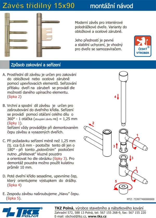 Hinge of three parts is for wooden doors and casing. Its perfection is in solid and stable gripping. Hinges are suitable for doors with self-closing equipment.