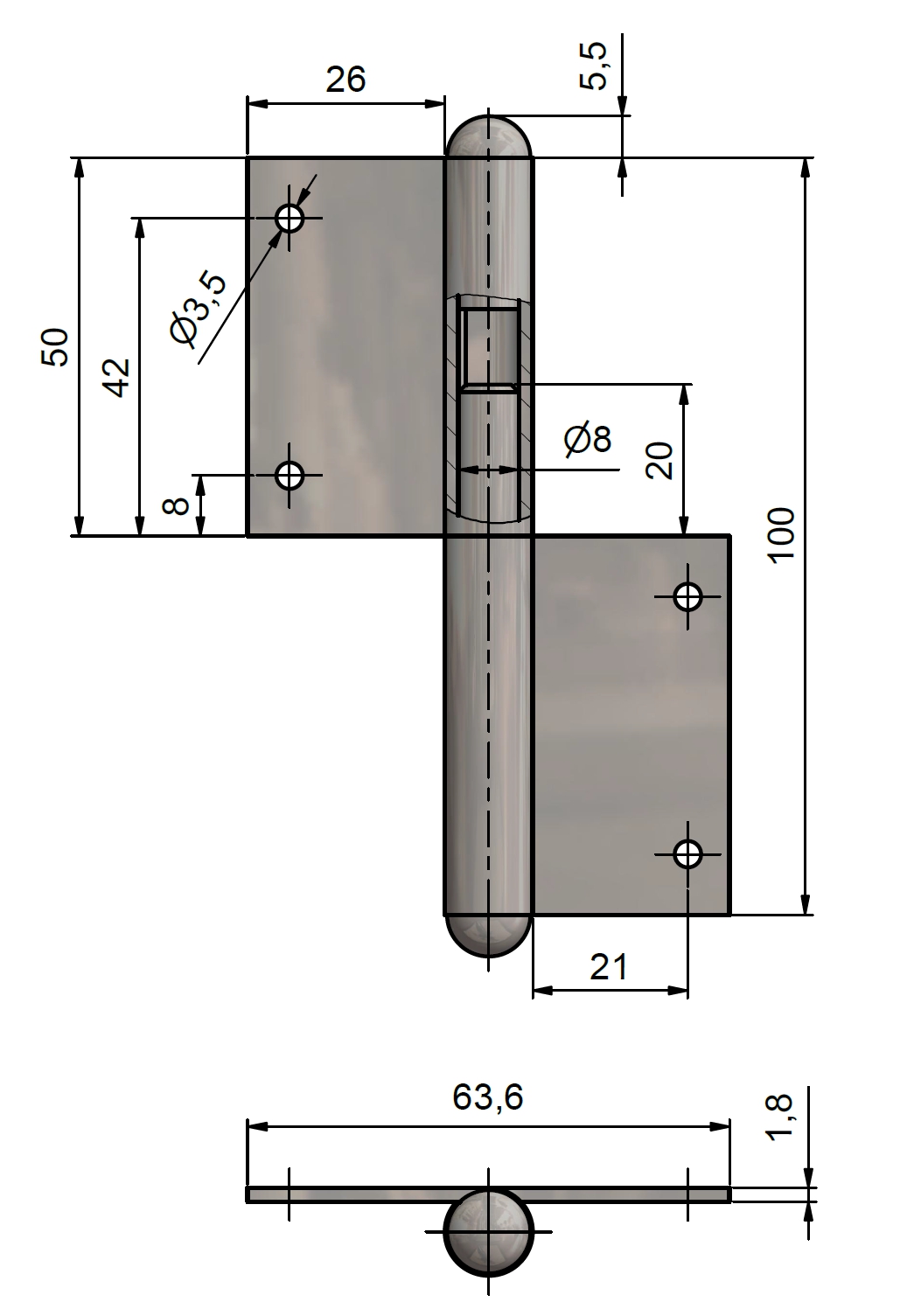 Window hinge 100 R classic (UR25)