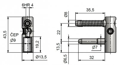 | Diameter of bolt rivet(s) | Special screw-thread into wood ø 8 |