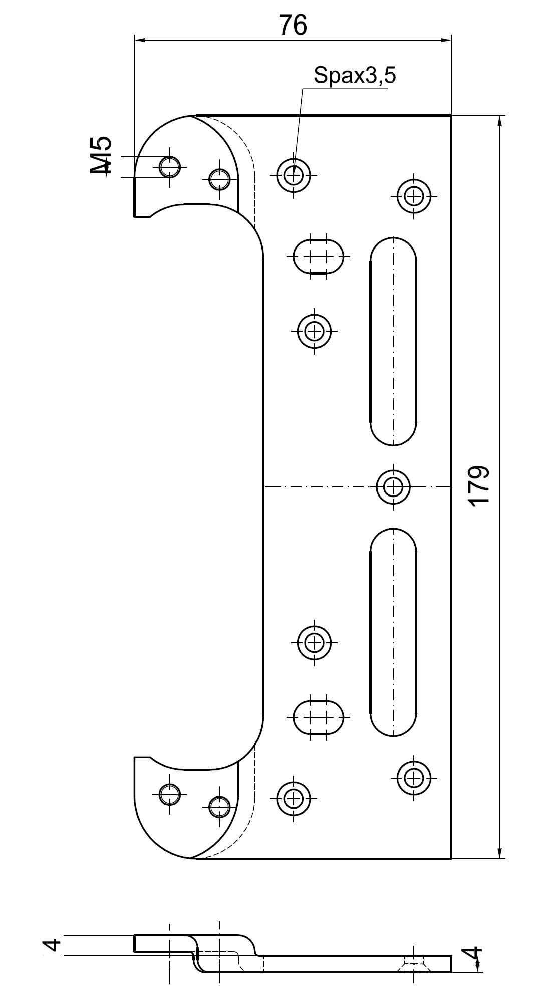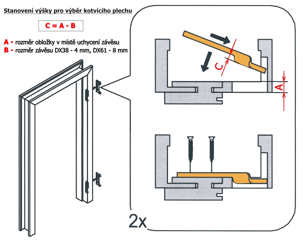 Plech slouží k uchycení v obložkové zárubni skrytého závěsu DX-61, nebo DX 101. Vyhnutí plechu je 4 mm.
