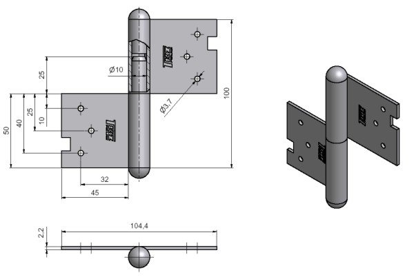 K otočnému spojení dveří s dřevěnou zárubní. Spodní i vrchní díl je k zadlabání. (Vrchní i spodní díl nutno zajistit hřebíky bez hlavičky.)