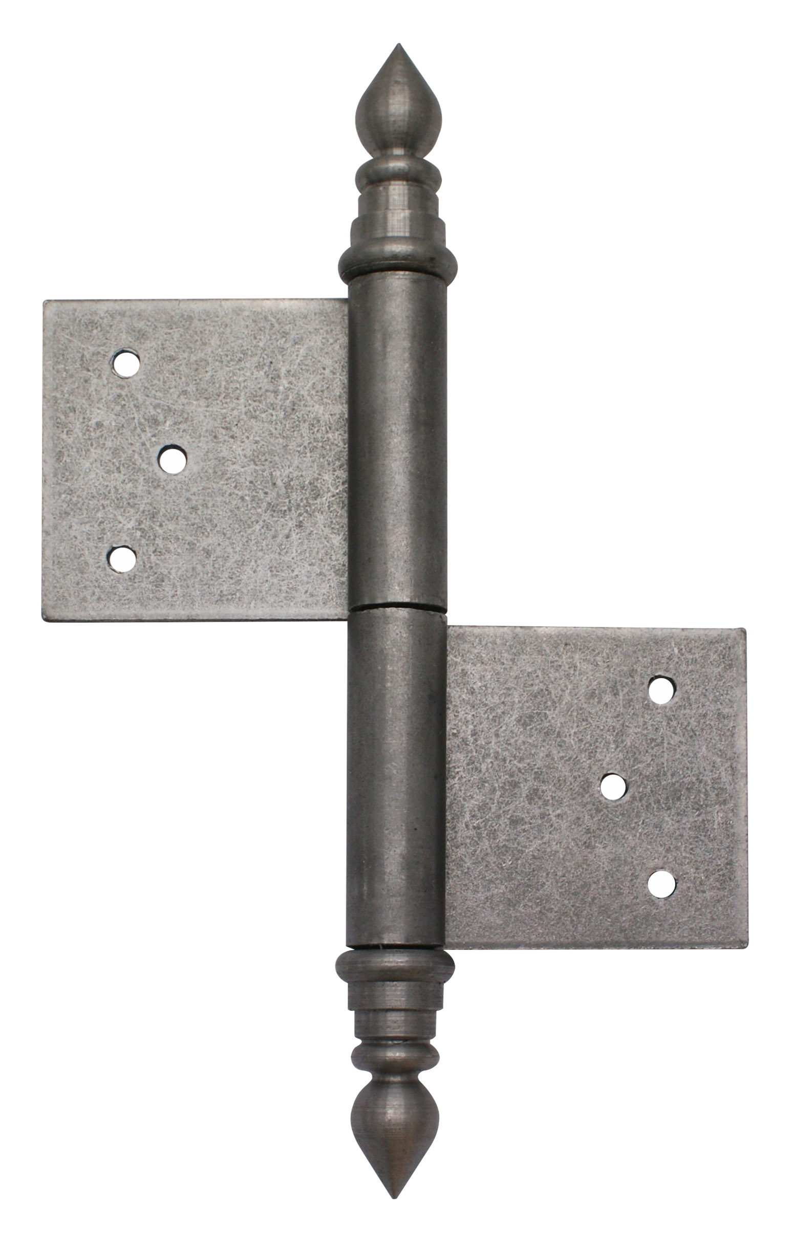 K otočnému spojení dveří s dřevěnou zárubní. Spodní i vrchní díl je k zadlabání. (nutno zajistit hřebíky bez hlavičky) Čep závěsu je opatřen ozdobným ukončením UR14. Velmi vhodný při rekonstrukcích starých dveří.