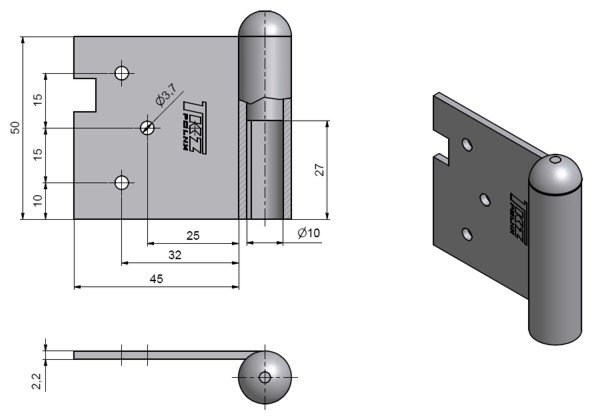 K otočnému spojení dveří s dřevěnou zárubní. Vrchní díl je k zadlabání. (nutno zajistit hřebíky bez hlaviček)
