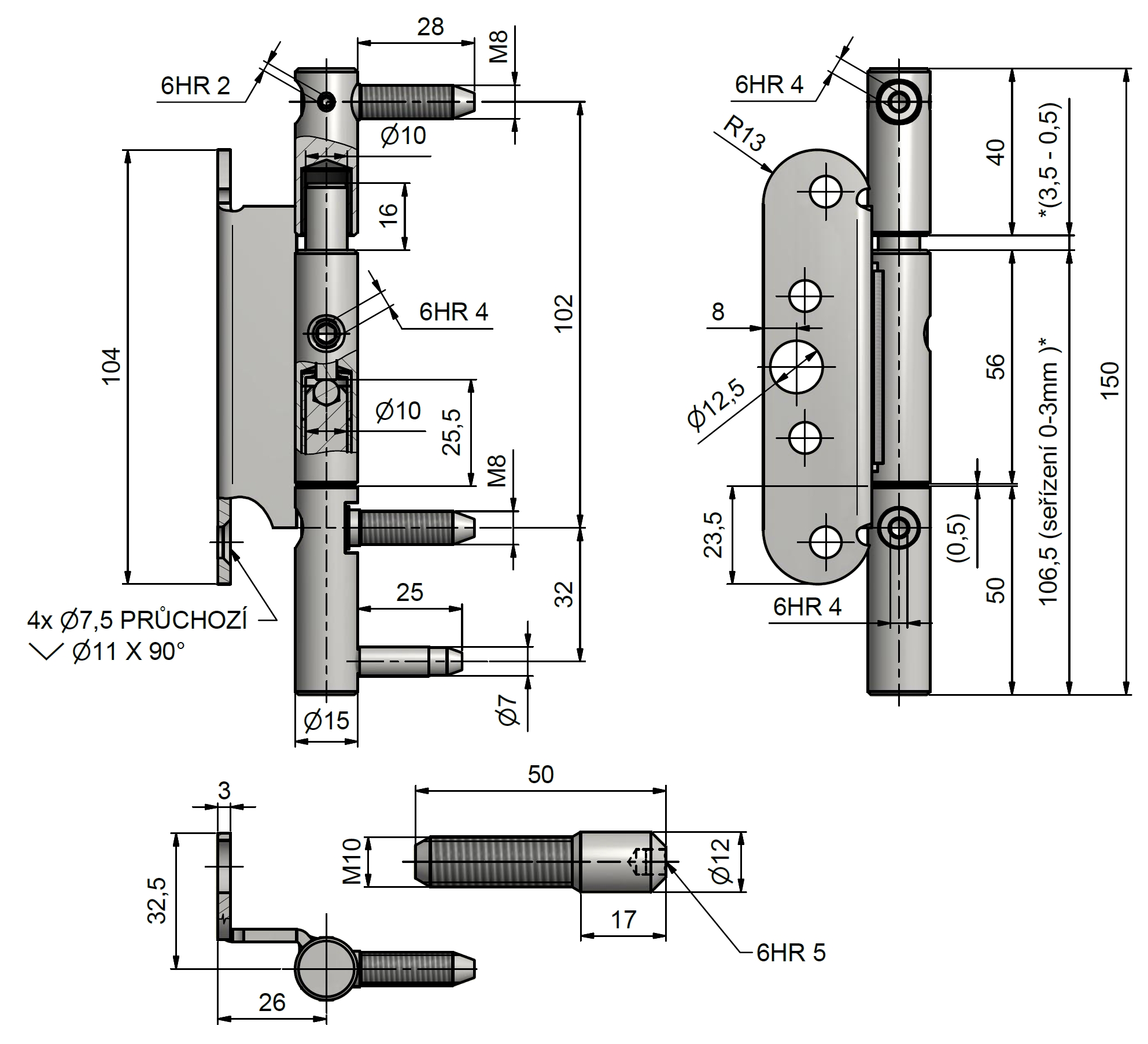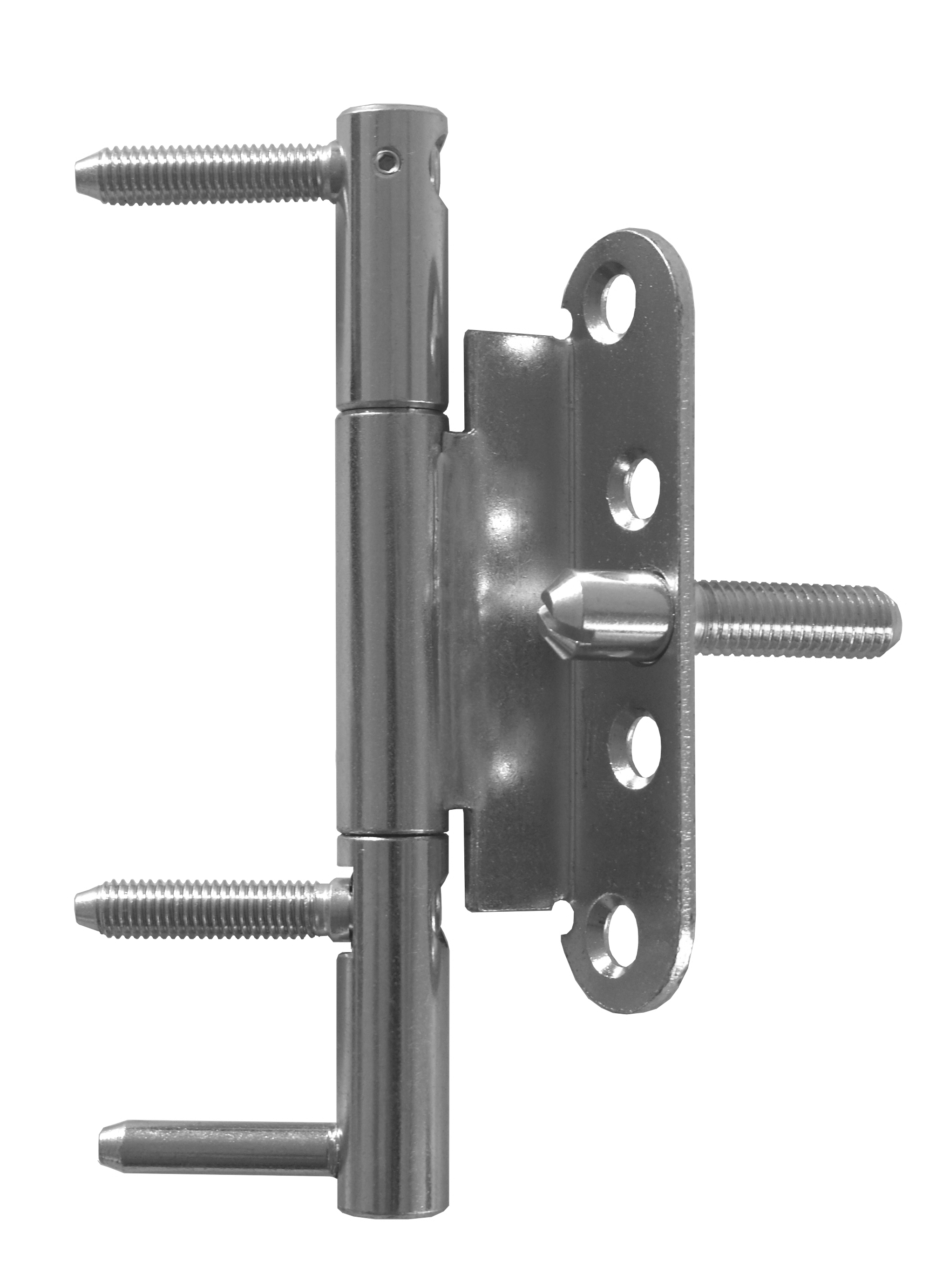 Moderní seřiditelný závěs ve dvou směrech (výškově a přítlak k zárubni) pro dveře s polodrážkou v bezpečnostní třídě RC3, vhodný k zašroubování do 2 držáků (kostek) pro ocelové zárubně (viz související zboží níže).