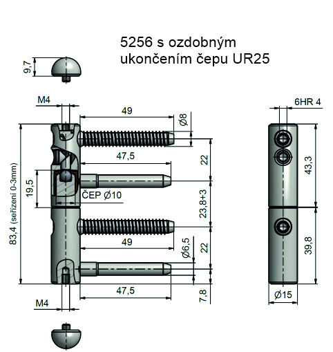 Závěs řady TRIO s ozdobným ukončením čepu - vyrobíme dle Vašich požadavků na zakázku! (panty jsou dodávány smontované)