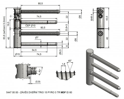 Závěs dveřní TRIO 15 PYRO 3 TR MDF EI 60 DZ PH
