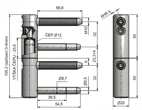 Závěs dveřní TRIO 20 M10 PH