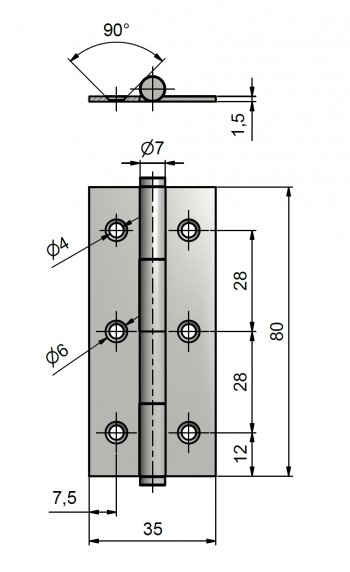 Závěs ( pant ) k přišroubování, k přichycení dvířek u nábytku, skříněk, králíkáren, beden, ...