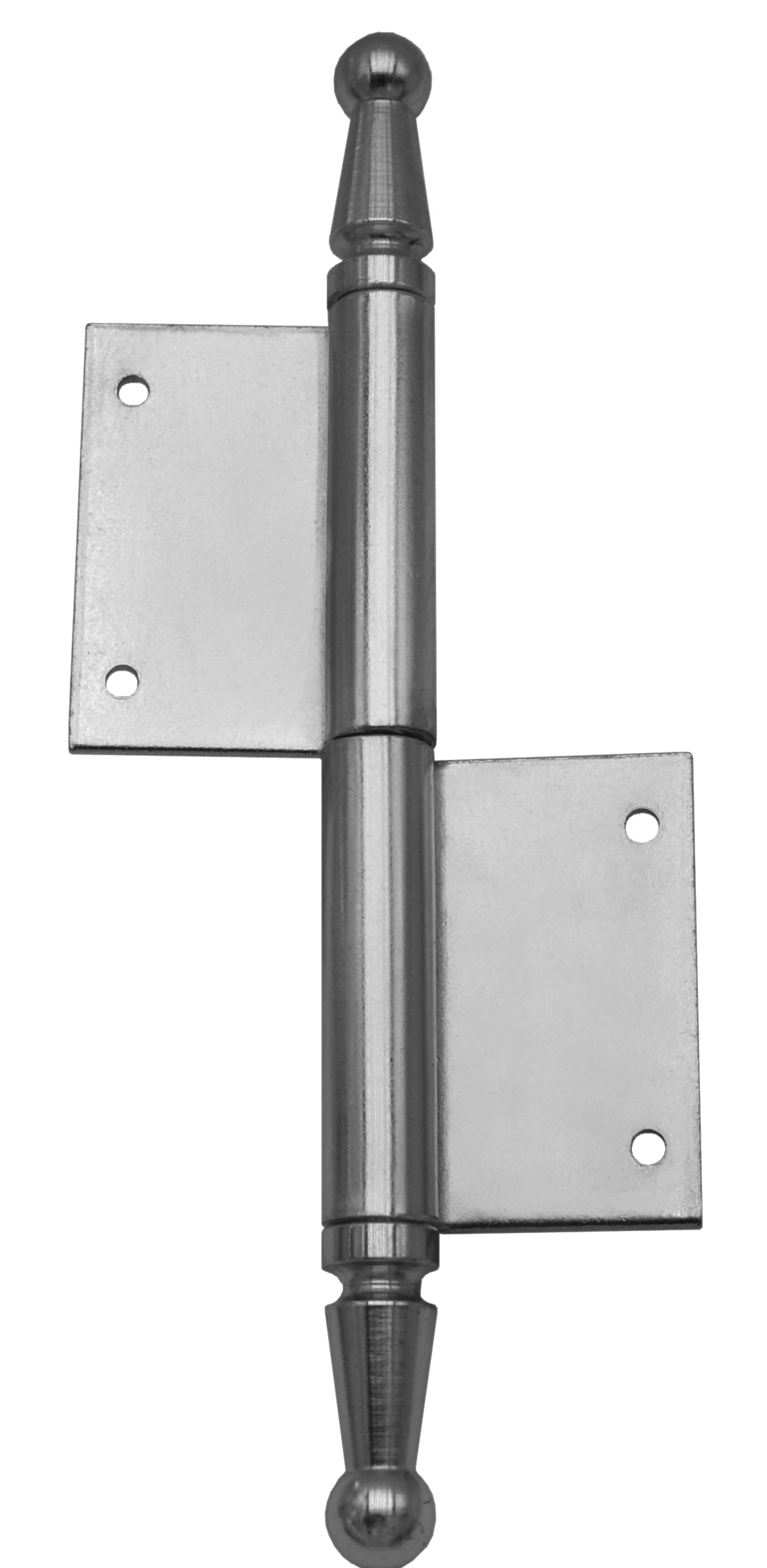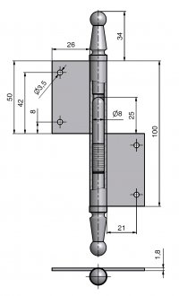 Závěs s ozdobným zakončením čepu. Používá se jako nosný závěs pro otočné spojení okenního křídla s rámem.