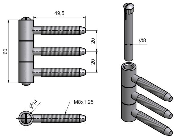Závěs třídílný 14x60 M8/50