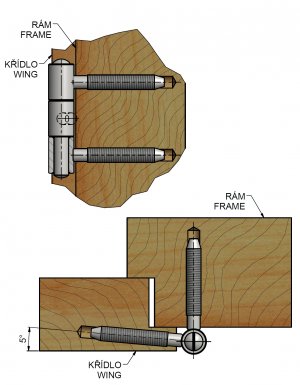 Pro otočné spojení dřevěných dveří s dřevěnou zárubní.