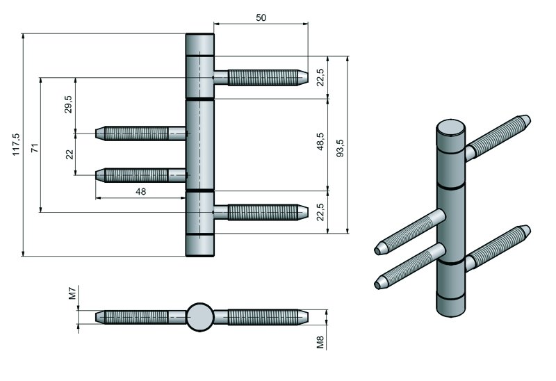 Závěs v moderním provedení, díky rovnému ukončení čepu výborně doladí celkový design dveří s rovnou klikou. Třídílný závěs pro dřevěné dveře a obložkovou zárubeň. Jeho předností je velmi pevné a stabilní uchycení. Vhodný pro dveře se samozavíračem.